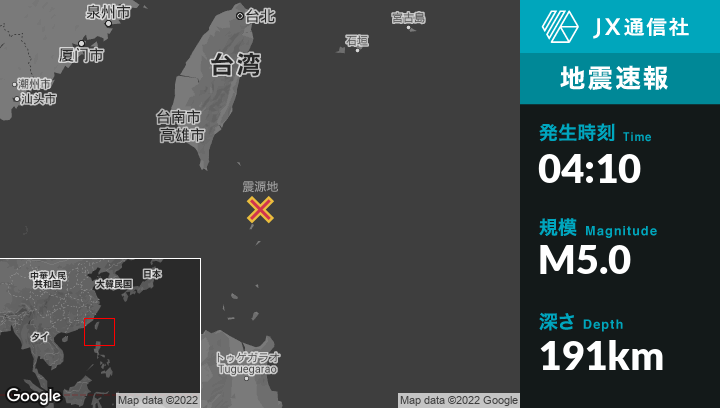 | 震源地 | フィリピンのBascoから北86kmの地点 |