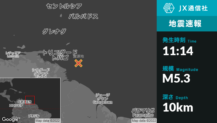 | 震源地 | トリニダード・トバゴのRio Claroから東南東142kmの地点 |