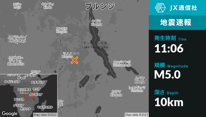 | 震源地 | コンゴ民主共和国のKabaloから南東178kmの地点 |