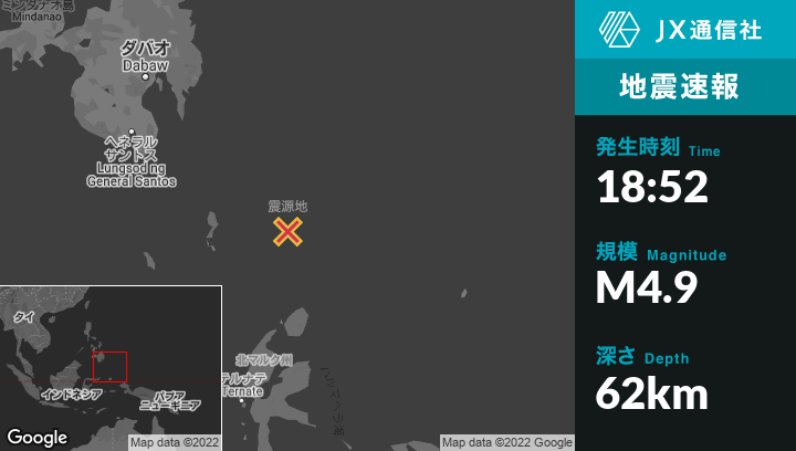 | 震源地 | インドネシアのTobeloから北282kmの地点 |