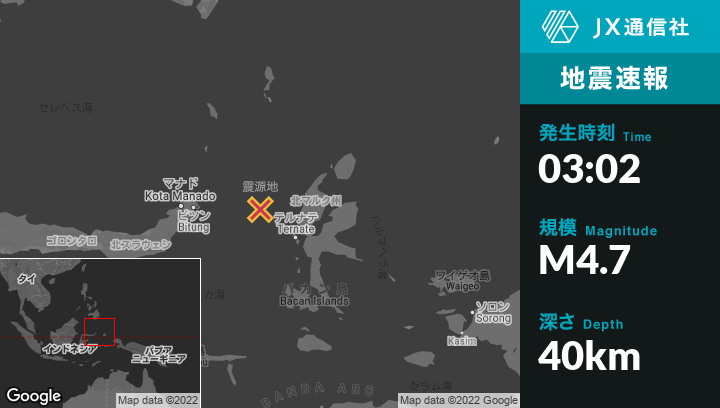 | 震源地 | インドネシアのTernateから北西120kmの地点 |