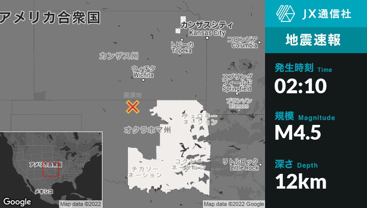 | 震源地 | オクラホマのMedfordから北西8kmの地点 |