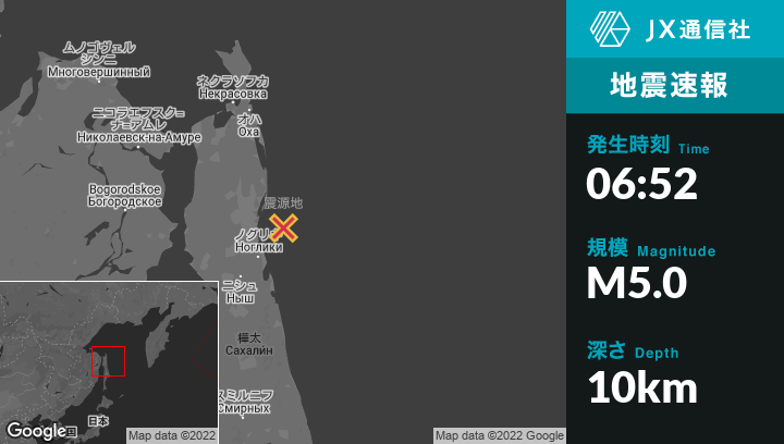 3月25日 06:52頃、ロシアのNoglikiから北東58kmの地点でM5.0の地震がありました。