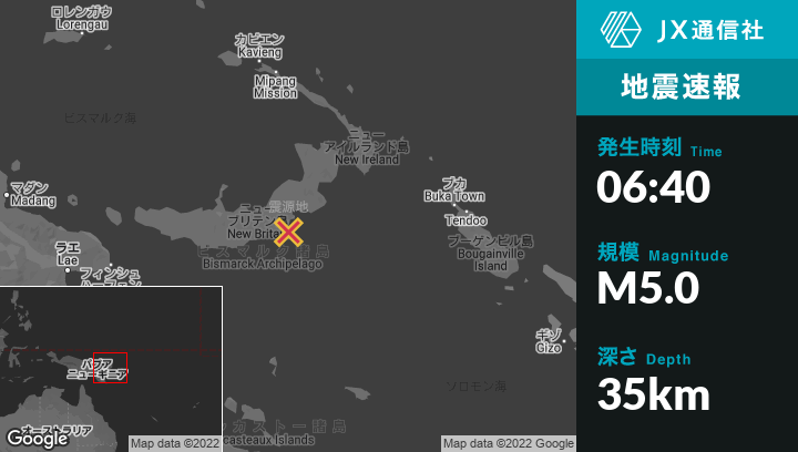 | 震源地 | パプアニューギニアのKimbeから東南東140kmの地点 |