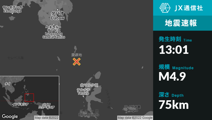 | 震源地 | インドネシアのTobeloから北北西230kmの地点 |