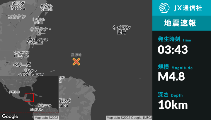 | 震源地 | ホンジュラスのSavannah Bightから東北東152kmの地点 |