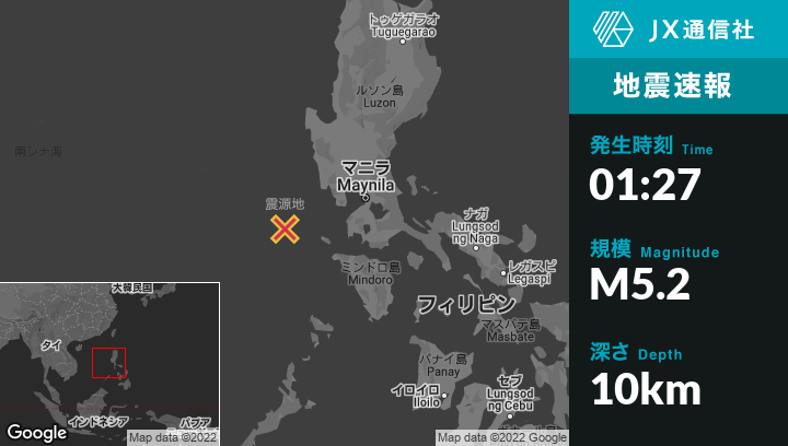 | 震源地 | フィリピンのCabraから西北西78kmの地点 |