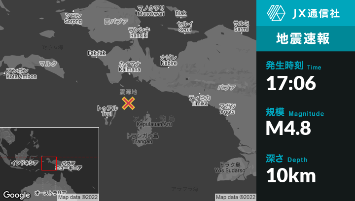 | 震源地 | インドネシアのTualから北東136kmの地点 |