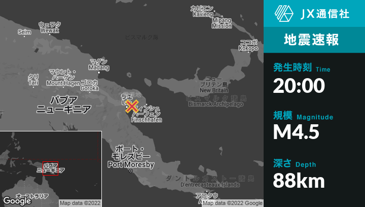 | 震源地 | パプアニューギニアのLaeから北東30kmの地点 |