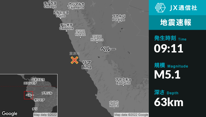 | 震源地 | ペルーのCaleta de Carquínから西38kmの地点 |