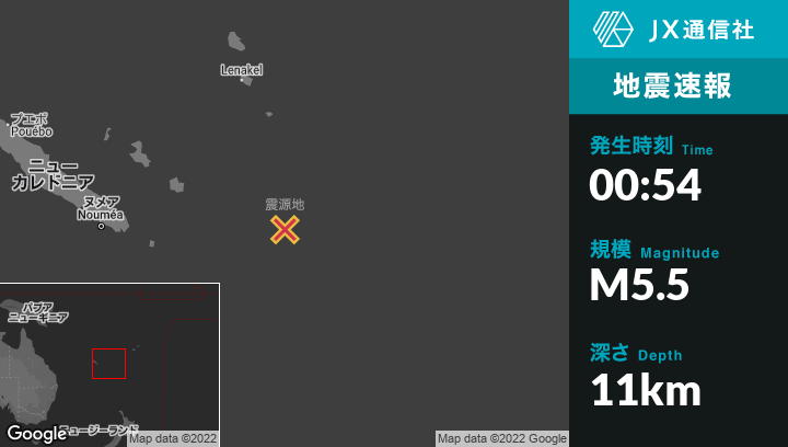 | 震源地 | ニューカレドニアのTadineから東南東244kmの地点 |