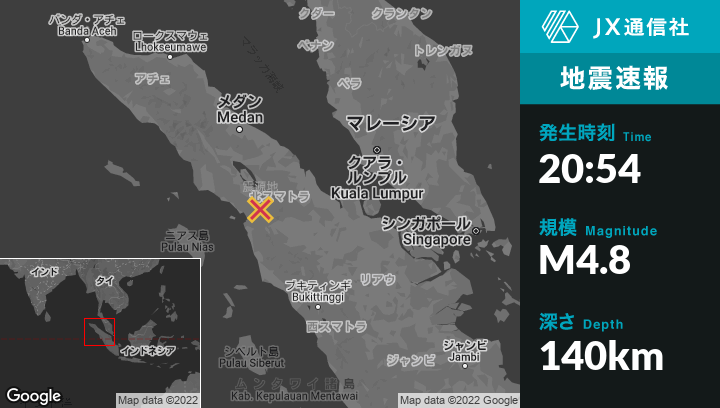 | 震源地 | インドネシアのSibolgaから東北東44kmの地点 |