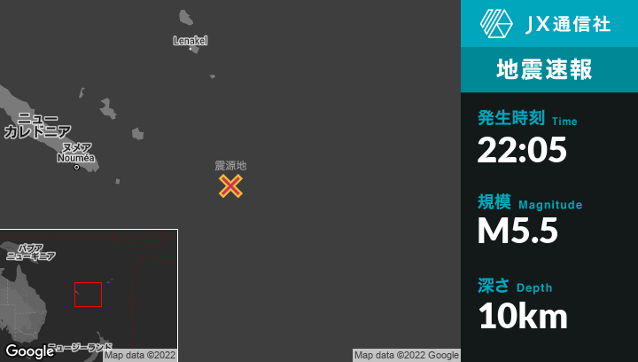 | 震源地 | ニューカレドニアのTadineから東南東271kmの地点 |