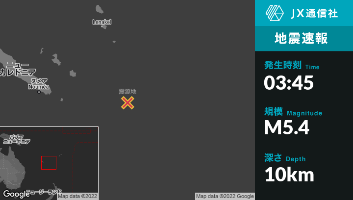 | 震源地 | ニューカレドニアのTadineから東南東287kmの地点 |