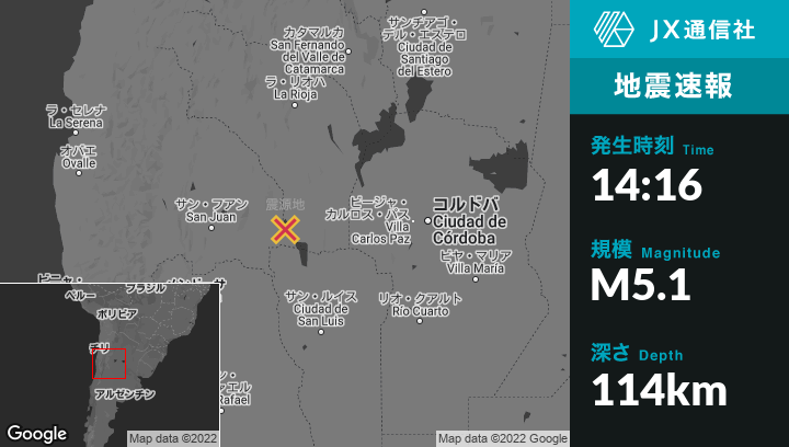 | 震源地 | アルゼンチンのSan Agustín de Valle Fértilから南南東99kmの地点 |