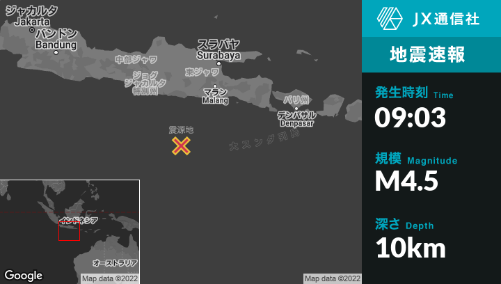| 震源地 | インドネシアのBoyolanguから南南西179kmの地点 |