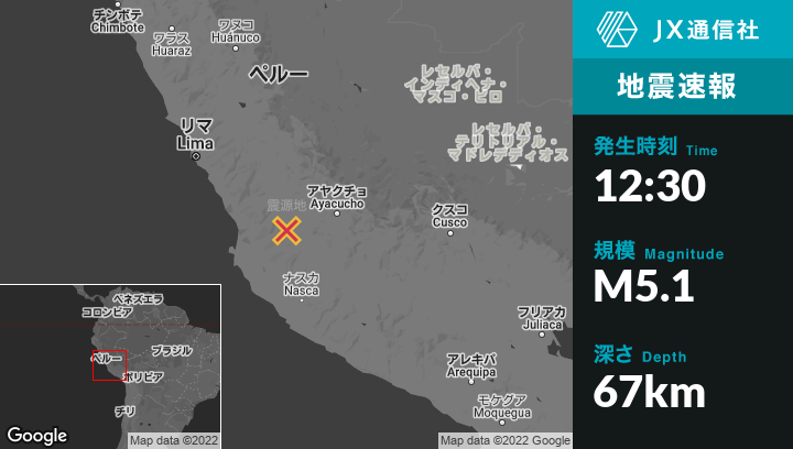 | 震源地 | ペルーのCocasから南東18kmの地点 |