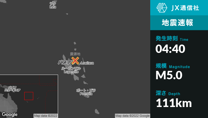 | 震源地 | バヌアツのPort-Olryから東47kmの地点 |