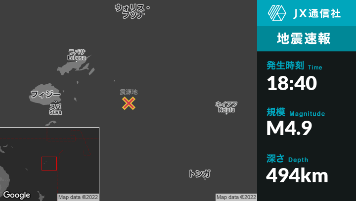 | 震源地 | フィジーのLevukaから東249kmの地点 |