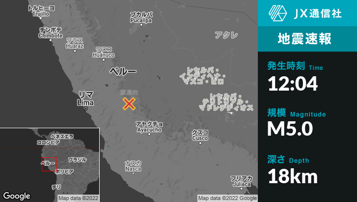 4月10日 12:04頃、ペルーのComasから西3kmの地点でM5.0の地震がありました。