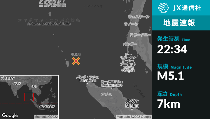 | 震源地 | インドネシアのSabangから北北西184kmの地点 |