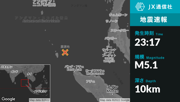 | 震源地 | インドネシアのSabangから北北西185kmの地点 |