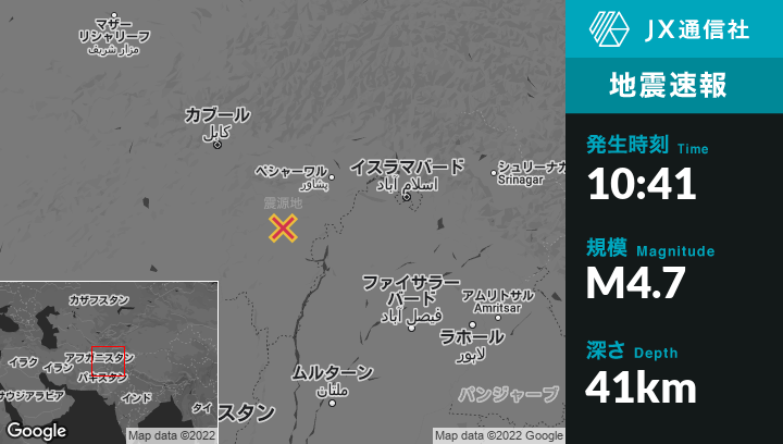 4月11日 10:41頃、パキスタンのDoabaから南西25kmの地点でM4.7の地震がありました。
