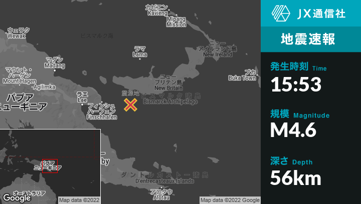 | 震源地 | パプアニューギニアのKandrianから南西65kmの地点 |