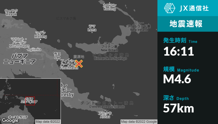 | 震源地 | パプアニューギニアのFinschhafenから東南東84kmの地点 |