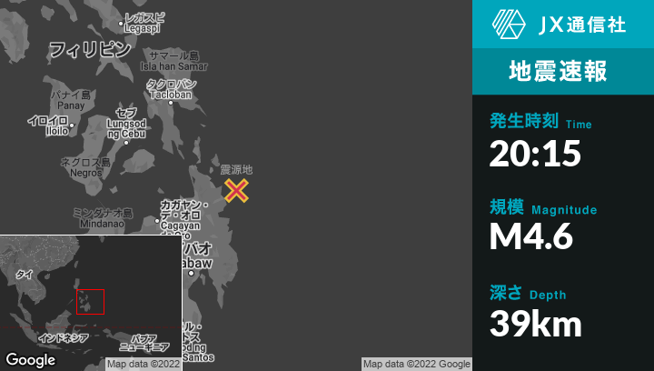 | 震源地 | フィリピンのCortesから東39kmの地点 |