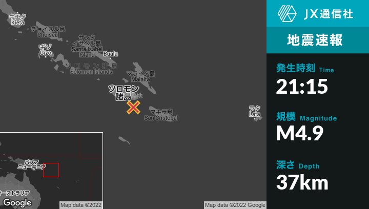 | 震源地 | ソロモン諸島のHoniaraから南東105kmの地点 |