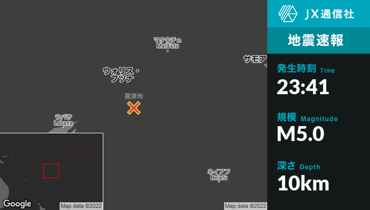 | 震源地 | ウォリス・フツナのAloから南南東143kmの地点 |