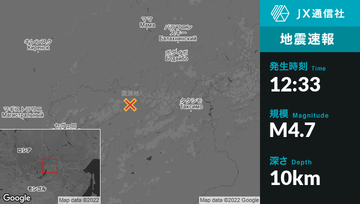 | 震源地 | ロシアのNovyy Uoyanから北北東55kmの地点 |