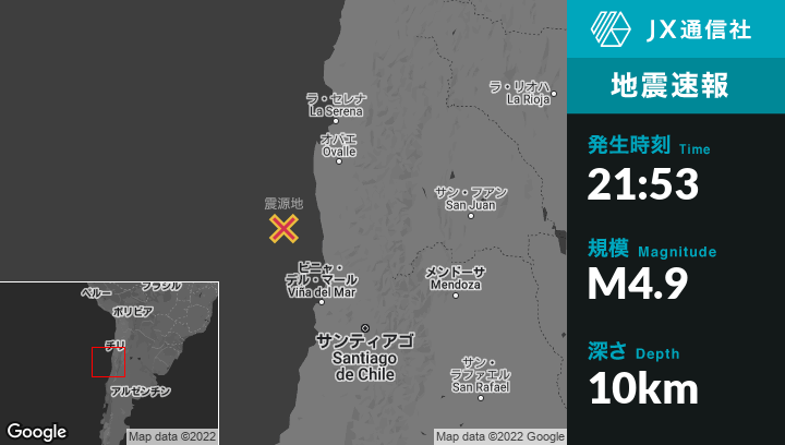 | 震源地 | チリのIllapelから西108kmの地点 |