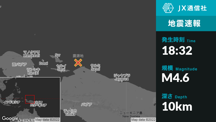 | 震源地 | インドネシアのBiakから東153kmの地点 |