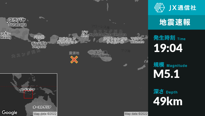 | 震源地 | インドネシアのDompuから南南西171kmの地点 |