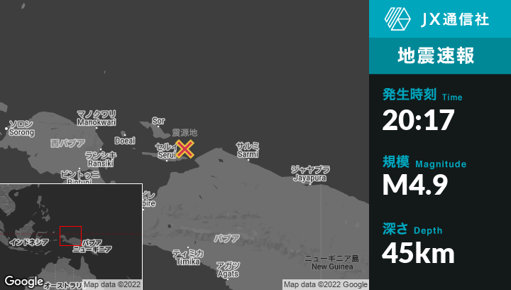 | 震源地 | インドネシアのBiakから東南東81kmの地点 |