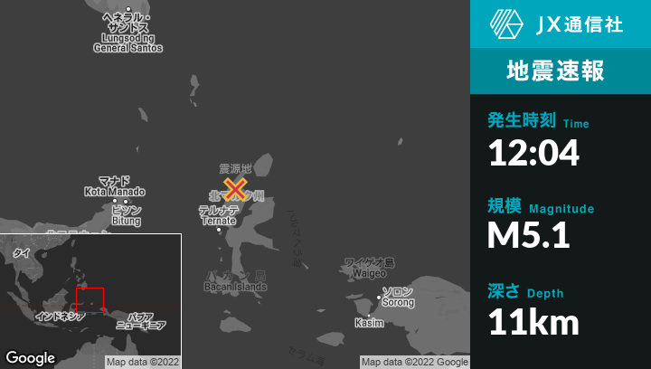 | 震源地 | インドネシアのTobeloから西北西30kmの地点 |