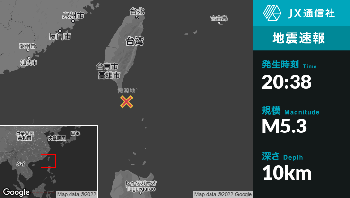 | 震源地 | 台湾のHengchunから南東54kmの地点 |