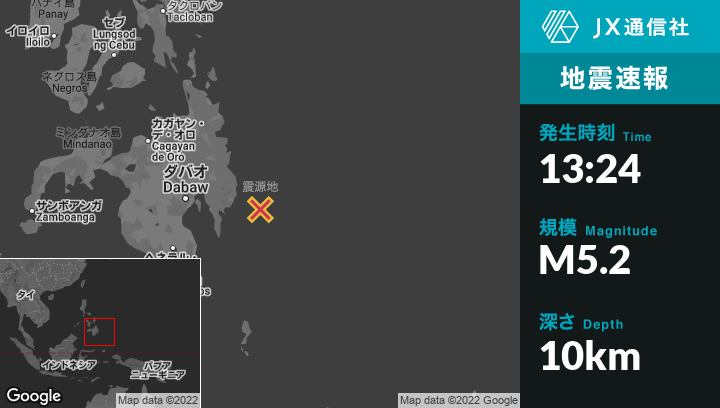4月19日 13:24頃、フィリピンのSantiagoから東南東60kmの地点でM5.2の地震がありました。