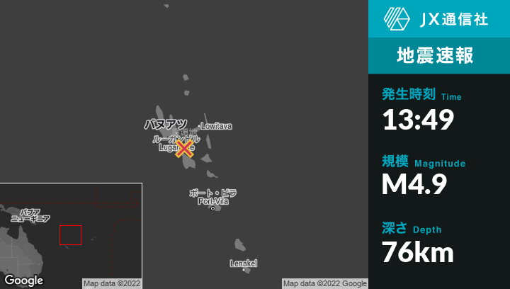 4月20日 13:49頃、バヌアツのNorsupから北25kmの地点でM4.9の地震がありました。