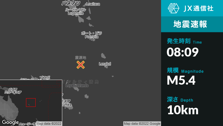 | 震源地 | ニューカレドニアのWéから北182kmの地点 |