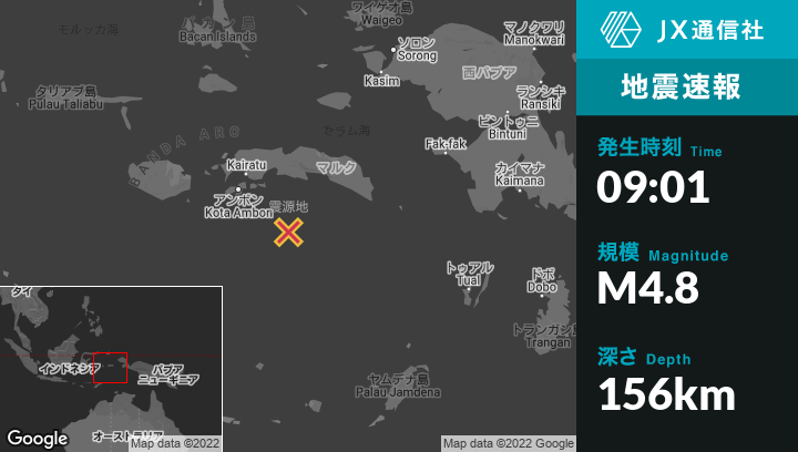 | 震源地 | インドネシアのAmahaiから南南東117kmの地点 |