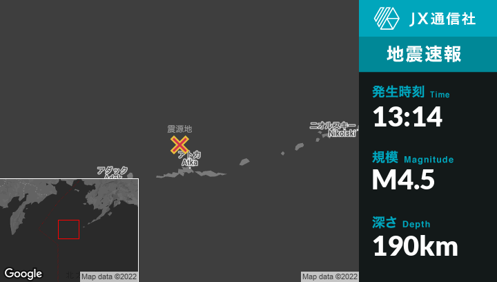| 震源地 | アラスカのAtkaから北北西61kmの地点 |