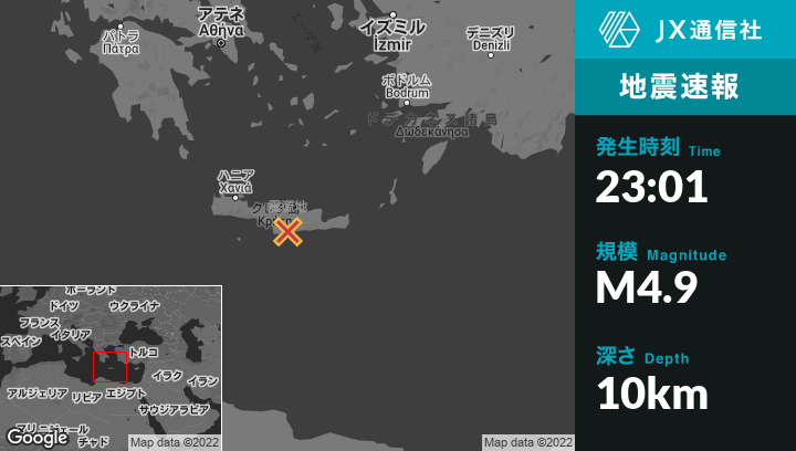 | 震源地 | ギリシャのAsímionから西北西4kmの地点 |