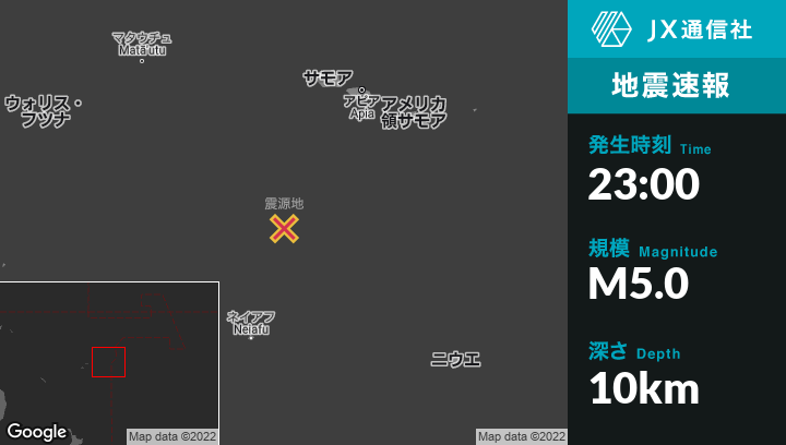 | 震源地 | トンガのHihifoから南東72kmの地点 |