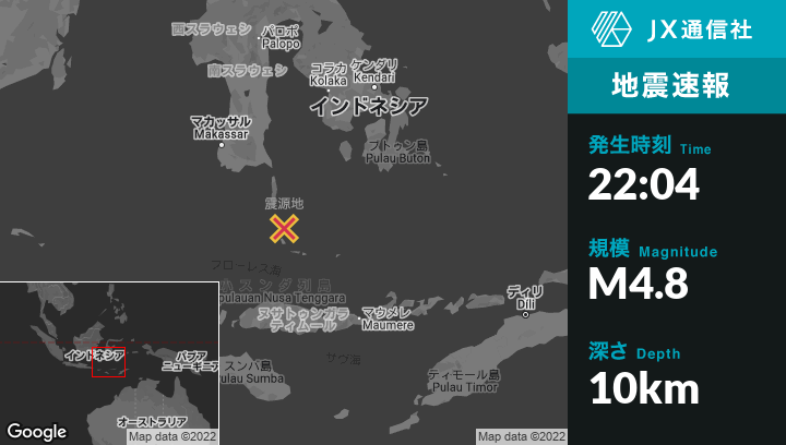 | 震源地 | インドネシアのSinjaiから南南東181kmの地点 |