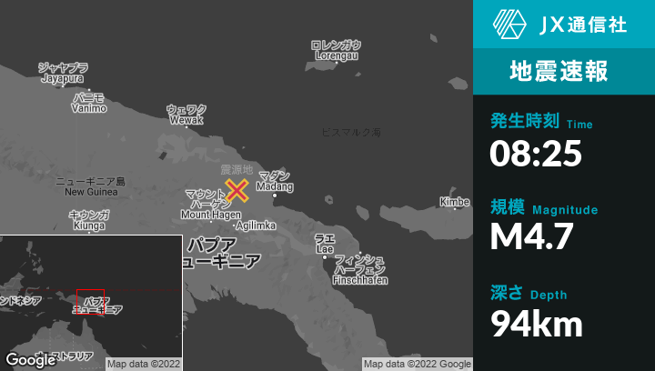 | 震源地 | パプアニューギニアのMadangから西北西105kmの地点 |