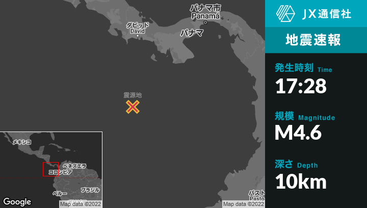 | 震源地 | パナマのBuricaから南283kmの地点 |