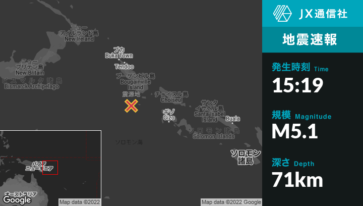 | 震源地 | パプアニューギニアのPangunaから南南西112kmの地点 |